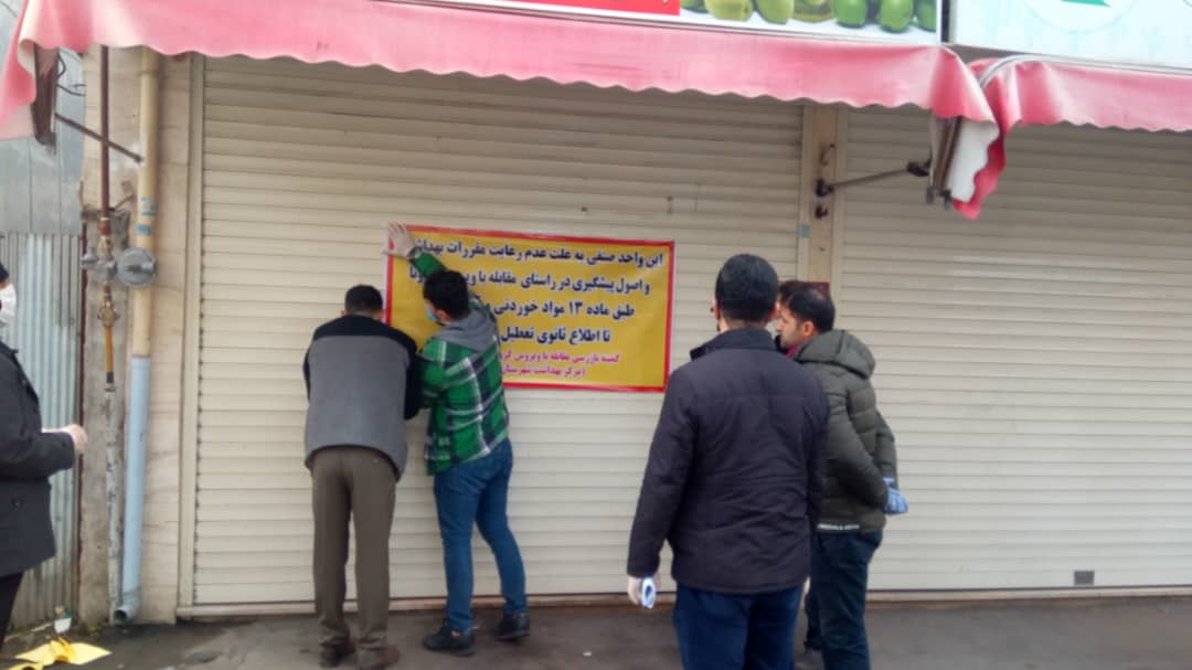 در راستای ادامه فعالیتهای ستاد مقابله با کرونا شهرستان در سطح شهر رشت بازرسی از مراکز تهیه و توزیع مواد غذایی به صورت مستمر و روزانه ادامه دارد و با متخلفین برخورد قانونی صورت می گیرد.  پیرو این بازدیدها تیمهای بازرسی واحد مهندسی بهداشت محیط مرکز بهداشت شهرستان رشت ۲ واحد صنفی را به علت دارا بودن نواقص بحرانی غیر قابل رفع در محل و عدم رعایت اصول پیشگیری در راستای مقابله با ویروس کرونا را طبق ماده ۱۳ قانون مواد خوردنی و آشامیدنی در تاریخ ۹۹/۱/۶ پلمب و غیرفعال نمودند.  شهروندان عزیز می توانند در صورت مشاهده هر گونه تخلف بهداشتی از سوی اصناف موارد تخلف را از طریق شماره تماس های ۳۲۱۲۸۳۵۹ و ۳۲۱۲۴۱۴۰جهت پیگیری های قانونی لازم اطلاع رسانی نمایند.
