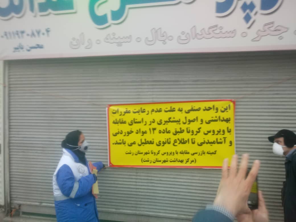 پیرو بازرسی از مراکز تهیه و توزیع مواد غذایی و اماکن عمومی و در راستای مقابله محیطی با کرونا ویروس و آخرین دستورالعمل اجرائی کاهش زنجیره انتقال کرونا ویروس، پلمب ۴واحد صنفی متخلف به دلیل عدم رعایت موازین بهداشتی و دارا بودن نواقص بحرانی غیرقابل رفع در محل و عدم رعایت بهداشت فردی و فاصله اجتماعی، توسط واحد مهندسی بهداشت محیط مرکز بهداشت شهرستان رشت در تاریخ ۹۹/۰۱/۱۰ صورت گرفت.